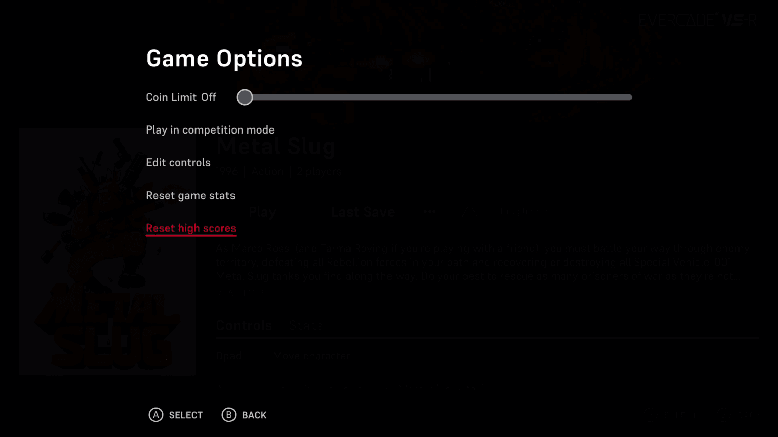 Gespeicherte Highscores können jetzt in unterstützten Arcade-Spielen zurückgesetzt werden. Um gespeicherte Highscores zurückzusetzen, wähle auf der Informationsseite eines einzelnen Spiels im Evercade-Menü die Schaltfläche mit den Auslassungspunkten („…“) und anschließend im angezeigten Menü „Spieloptionen“ die Option „Highscores zurücksetzen“. Du wirst anschließend um Bestätigung gebeten. Folge einfach den Anweisungen auf dem Bildschirm. Deine gespeicherten Punkte werden gelöscht und die Highscore-Tabelle wird auf den ursprünglichen Wert zurückgesetzt, als wäre der Arcade-Automat zum ersten Mal eingeschaltet worden. Dieser Vorgang lässt sich nicht rückgängig machen!