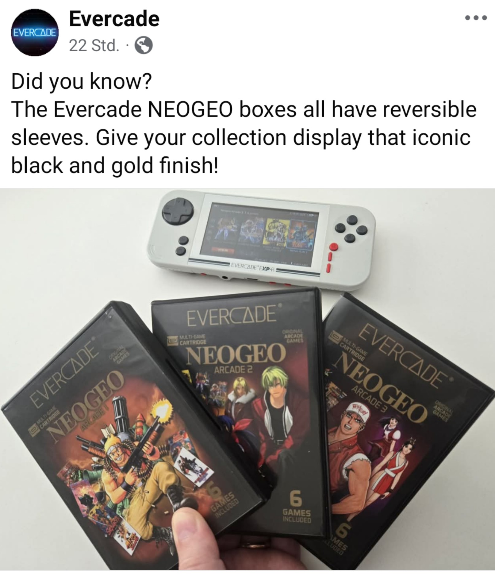 bei E*** bietet jemand aus England das neue Modul NEOGEO 1 mit einem seltenem Cover an. Es ist dunkel gehalten und hat eine goldene Schrift.